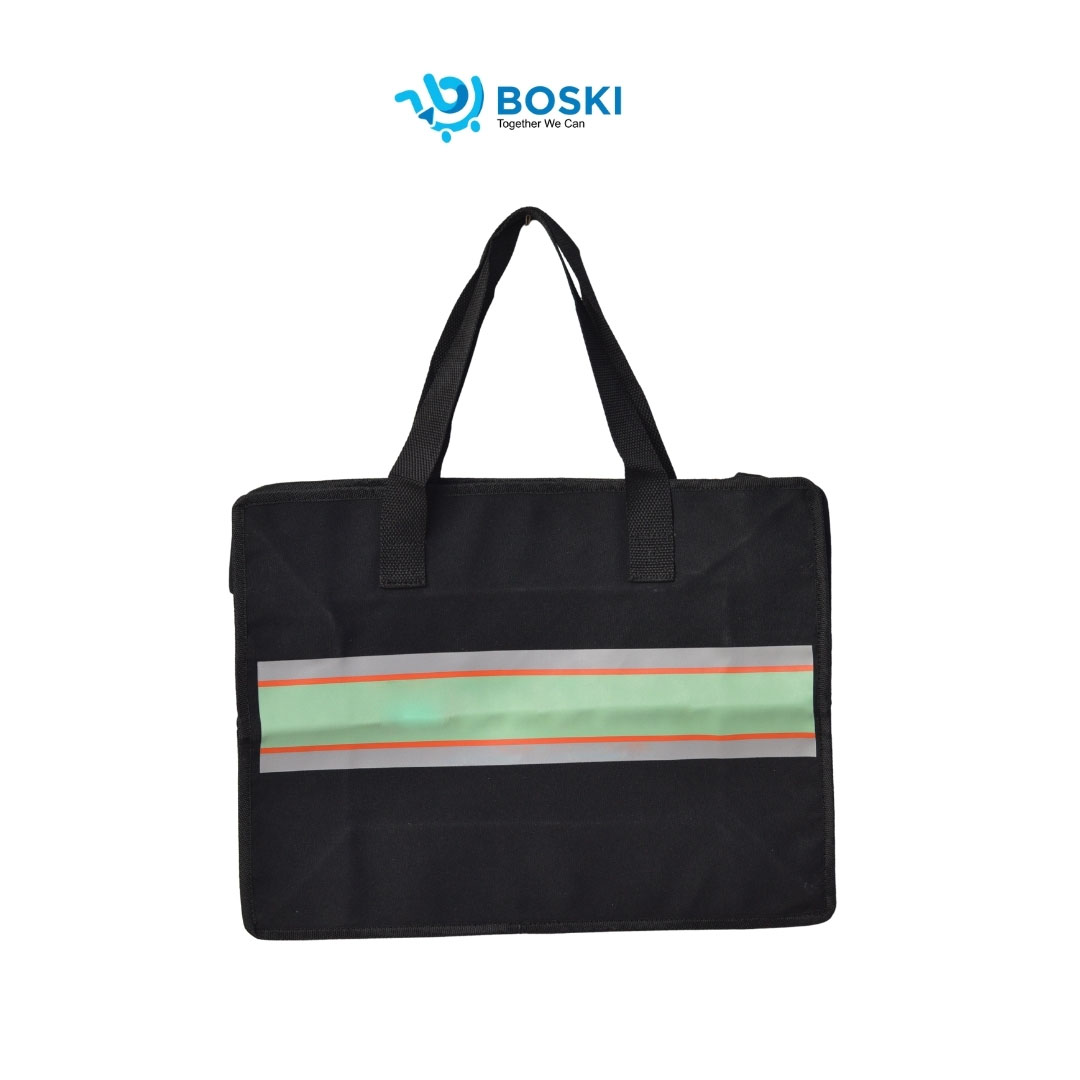 Train Tote Bag dirancang sebagai tas multifungsi dengan kapasitas yang sangat lega, menjadikannya solusi praktis untuk membawa perlengkapan dalam jumlah banyak. Desainnya yang melebar ke samping serta kedalaman alas yang luas memungkinkan Anda menata dokumen, pakaian, atau barang belanjaan dengan posisi yang lebih stabil.